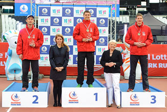 Two Woodford men made the very first podium at the new Olympic Stadium at Stratford following today's National Lottery 5 Mile Run. Tomaz Plibersek was 2nd and Tom Beedell 3rd and were awarded their prizes by Princess Beatrice. We believe 10 of our members ran the race in all.