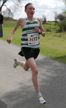 It was a great coincidence that our Tomaz Plibersek and Highgate's Ryan McKinlay began leg 11 neck-and-neck, because they have become friends and training partners while steeplechasing in our British League track team - McKinlay competes for us under the Higher Competition rule. McKinlay has had a very fine winter season but went into this race troubled by a hip injury, so we were hopeful that Plibersek could limit their gains and give our leg 12 man a shot at passing a club with whom we have become very friendly rivals. It was a difficult tactical situation for Plibersek, who knew that McKinlay was quicker, but did not know how much quicker. He possibly ran a fraction quicker than ideal in the first half of the race, and he suffered badly in the last 2 miles. McKinlay clocked 28.05, and was certainly affected by his injury, to Plibersek's 28.48. A very good Liverpool man went passed us, too, so we were 12th.