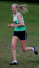 151 would have been a record field for Stevenage. The addition of 14 non-scoring but very competitive guests from Cambridge University made it an all time record 164. Used to being outnumbered on the start line by red and yellow rather than duck egg blue, the nine starting Green and Whites were not fazed by this kodachrome confusion and waited for the gun to start this fast, flat, lightly wooded race. Sara Bird (5) was first home for Woodford, finishing 4th amongst the scorers and rightly delighted with her run which at 22’ dead was 1’11 faster than her time (for 14th) here last year when she was fresh back from the States. Next home was Emily Moss (18), 1’13 behind. Quietly satisfied with her performance, one would imagine that Moss, who was dogged with injury last winter, is confident of more to come. We hope so.