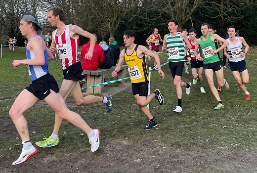 James Stockings made an aggressive start and then did not enjoy the middle two laps, but had a second wind for the final lap. He put together a strong finish, motivated by the presence of Essex rivals Dave Fewell and Ben Davis to finish 59th. Angus Holford would have hoped for a muddier course, and consciously also set out fast (by his standards) knowing his usual caution would not be rewarded. He shipped five places in the second half of the race to finish 74th. 'Ben Phillips', in 90th place, had opted for trail shoes in part to look after his “ageing legs”. However he relished the sections with tarmac paths and was satisfied to gain a handful of places in the long finishing straight to elevate his final position. It seems that there was a mistake with runner declaration and this was in fact Tom Beedell.
