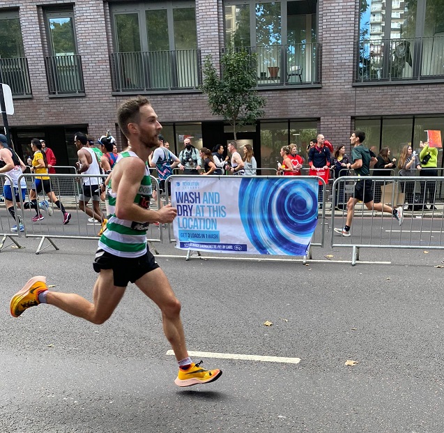 A few days later Tom reflected: "To prepare for the race, I was running around 100 miles a week in the preceding 4 months. I was nervous in the week before, but after the gun went I loved every second (even the grinding last mile!). Everything went to plan, I was cautious in the first half, I took my drinks and gels and came into the final few miles feeling strong. I only took the lead (in the mass race) at mile 23, but this gave me an extra boost. I finished in 2:18:35. Now, I will enjoy some rest. The preparation has been mentally and physically tough. My next goal is to run the Berlin marathon next September in a faster time, perhaps taking down that club record that was tantalisingly close!"