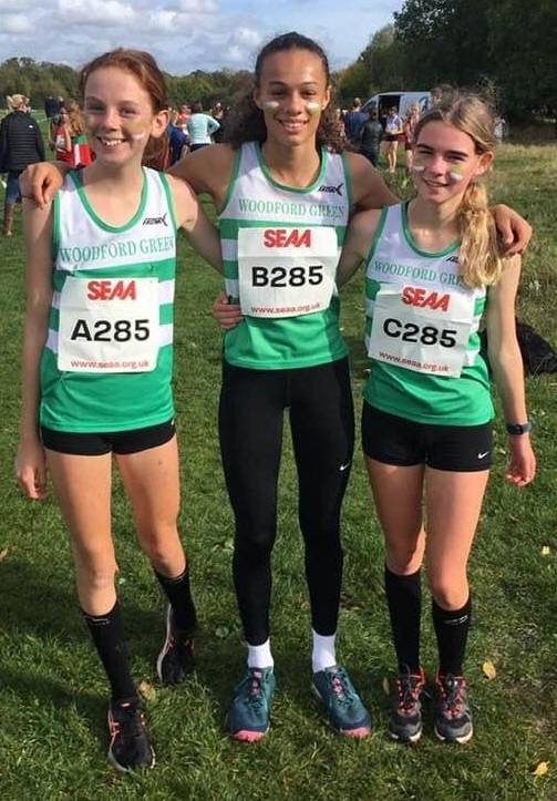 Matilda Frith took care of the final leg. Matilda is maturing into a fine endurance runner and this was confirmed by an excellent win in a Chingford League 10 days ago over 5 k in 21 mins 38 secs. Although the dreaded Aldershot squad were well clear by now. Matilda went off hard and held 2nd spot for much of the circuit. Unfortunately for us, Windsor and Herne Hill had placed their fastest runners on the last leg and gradually closed down on our runner. Matilda had a great run despite losing two places late on to bring the Woodettes into 4th spot, putting some big endurance clubs behind us.