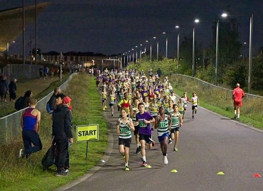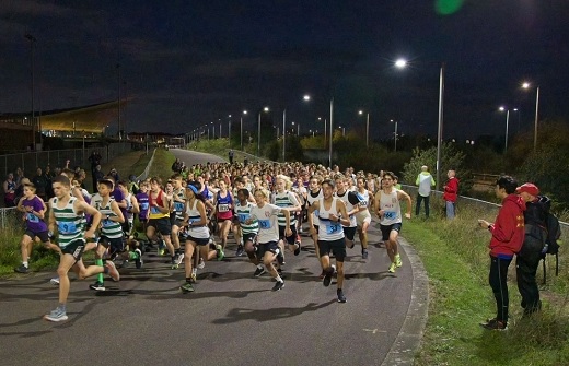 60 WGEL athletes including a senior men's veteran team headed to the Olympic Park for this midweek race under floodlights. Velopark is a hilly tarmac course where the U/11's and U/13's ran 2kmwith teh U/15's and seniors covering 5km.