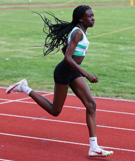 For the Under 15 girls Shalom Prince is most definitely having a purple patch with her sprinting, she ran the 100m a-string in a new PB time of: 12.39sec and a PB whilst also running a good time in the 200m with: 25.75sec and it would also have been a PB if not for a +2.2 wind, she came 2nd in the a-string. Remi Salako was 4th in the b-string 100m with a time of: 13.39sec, she also did the Long Jump finishing with a 1st place leap of: 5m 24cm. In the non-scoring 100m's again if not for the wind at +2.6, then Savanna Gayle: 13.20sec and Tare Gabrielle Akpoveta: 13.99sec would have been PB's. Joy Larins was the b-string 200m runner and was 3rd in a new PB time of: 26.85sec. Both Isabella Moulton and Habiba Tijani ran the 300m and both again claimed PB's. Isabella was 4th a-string: 43.65sec and Habiba was 3rd b-string with: 44.71sec.