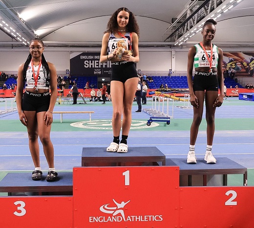 Sheffield hosted the U/15, U/17 and U/20 National Indoor Championships. Over 60m Woodford was well represented. In the U/15 Girls 60m Joy Larinde placed 5th in the final with 7.88 secs, having qualified from her semi with a p.b. of 7.82 secs.
