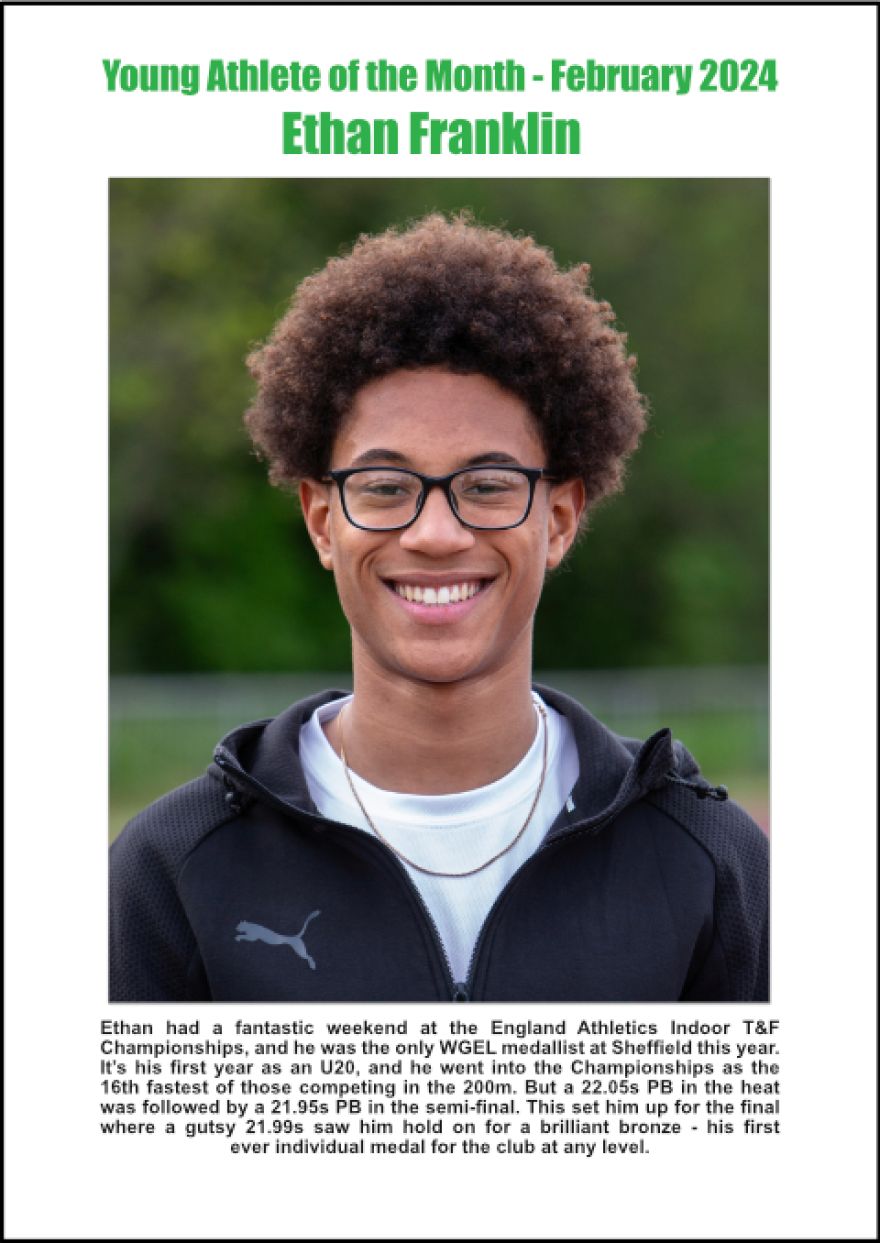 There were numerous PBs and strong performances by Woodford athletes at the England indoor age group championships in Sheffield but the only medallist was Ethan Franklin who took bronze in the U20...